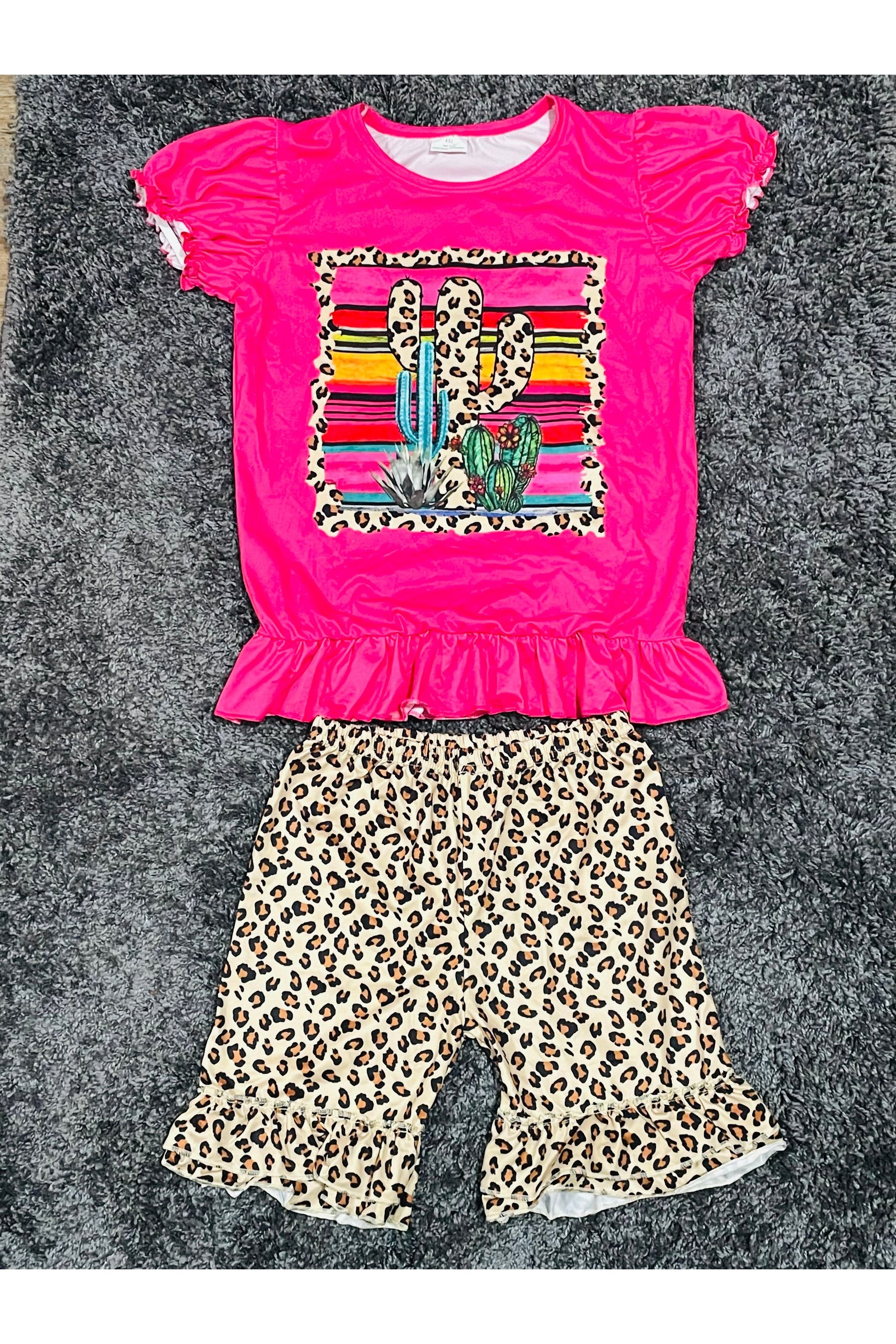 Brighten up your little one's wardrobe with the Journee’s Pink Cactus Girls Short Set from JLadyBoutique! The vibrant pink top, adorned with playful cactus illustrations, is sure to have your little miss sunshine beaming. Paired neatly with matching shorts, this set is a gorgeous choice for a picnic, a family gathering, or just a regular day when she wants to sparkle. The unique design sets her style apart, with the added bonus of comfort and durability woven in. Acquire this chic ensemble today, and watch her twirl with joy!