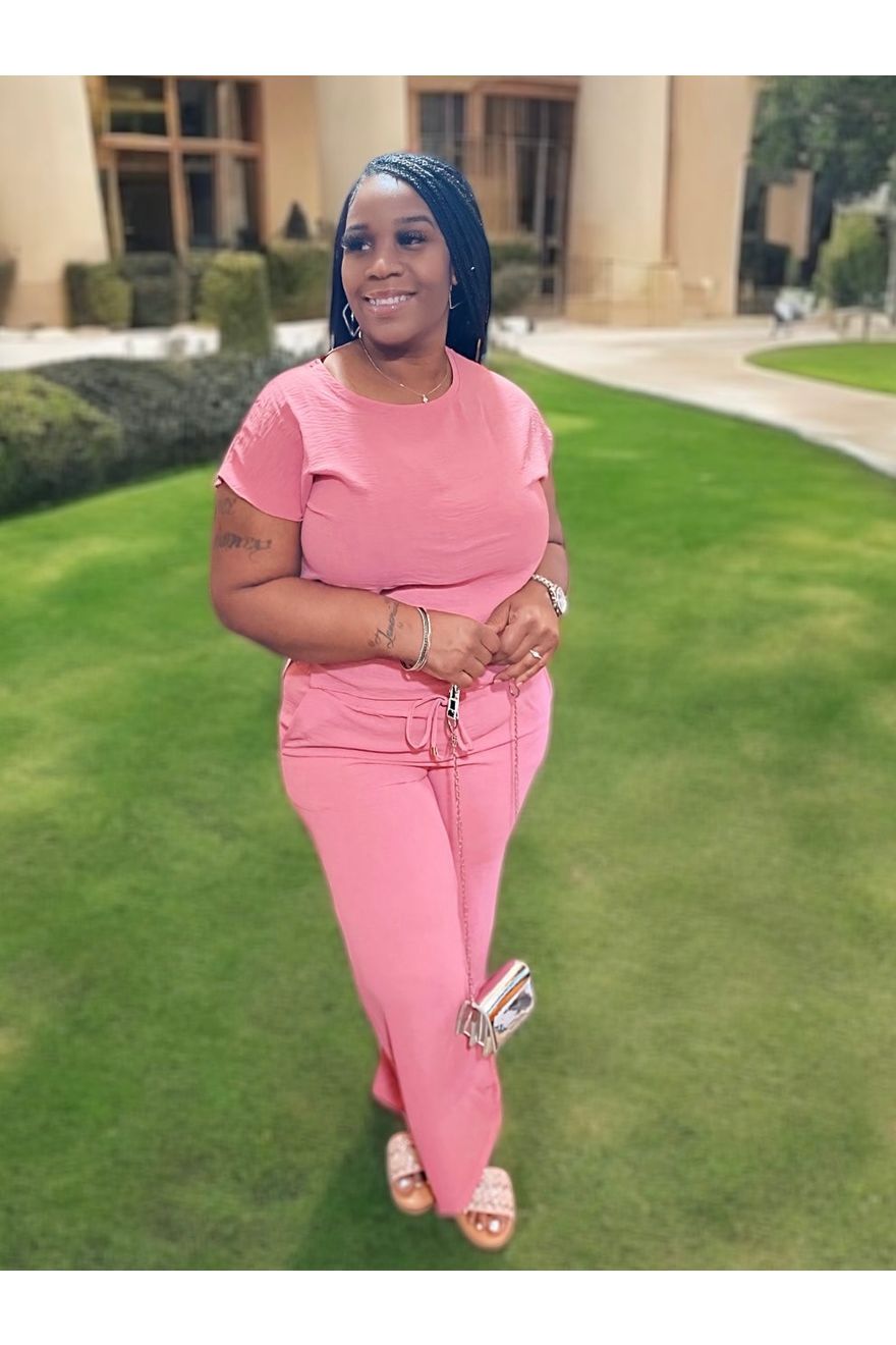 Upgrade your summer wardrobe with our 2-piece matching set. It includes a comfy short-sleeve top and bottoms with an elastic drawstring waistband and pockets. Made from lightweight, breathable fabric, it's perfect for staying cool in summer. Ideal for all ages, it's a versatile addition to any closet.